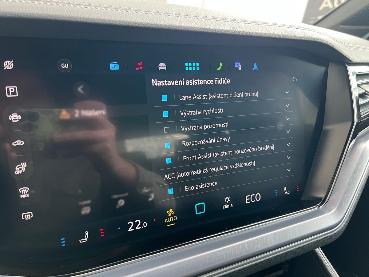| Nadstandardní výbava: | bluetooth, elektronická ruční brzda, imobilizér, bezklíčové odemykání, bezklíčové startování, start-stop systém, palubní počítač, USB, satelitní navigace, Apple CarPlay, multifunkční volant, vyhřívaný volant, nastavitelný volant, zadní loketní opěrka, výškově nastavitelné sedadlo řidiče, výškově nastavitelná sedadla, vyhřívaná sedadla, odvětrávaná sedadla, isofix, el. seřiditelná sedadla, zadní stěrač, denní svícení, zadní světla LED, mlhovky, alu kola, el. zrcátka, vyhřívaná zrcátka, el. sklopná zrcátka, el. přední okna, el. okna, el. víko zavazadlového prostoru, centrální zamykání, řazení pádly pod volantem, aut. klimatizace, centrál dálkový, dělená zadní sedadla, adaptivní tempomat, parkovací senzory přední, venkovní teploměr, stabilizace podvozku (ESP), pohon 4x4, aut. převodovka, asistent jízdy v jízdním pruhu, hlídání jízdního pruhu, ABS, | |