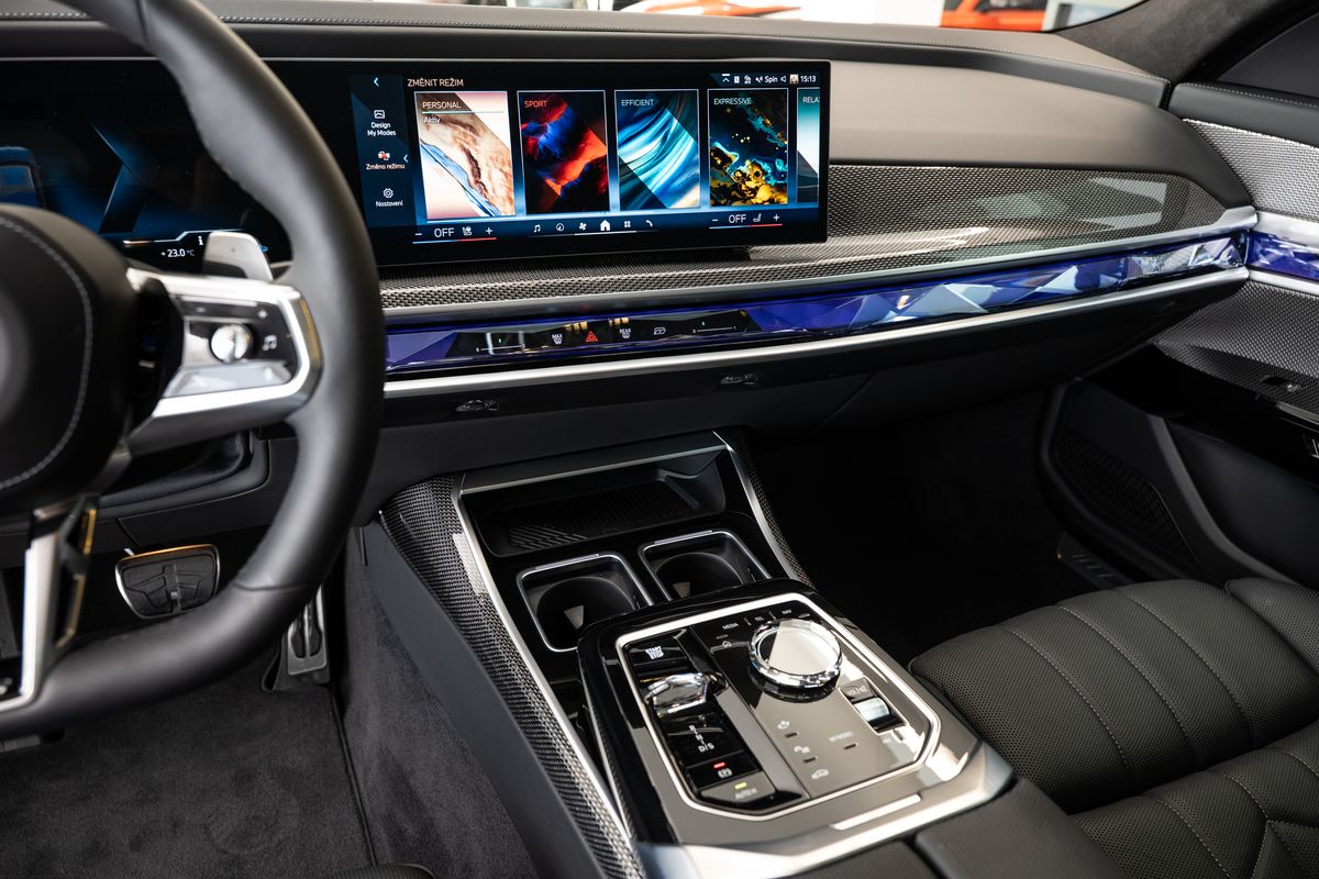| Doplňující popis: | Číslo inzerce CE.xxx.6401, BMW 740d xDrive, Metalický lak Black Sapphire, 21 M kola z lehké slitiny Star-spoke 908 M Bicolour, BMW Individual kůže Merino Black, Obložení interiéru M Carbon Fibre se stříbrným prošitím/Piano Finish Black, M sportovní paket, M sportovní paket Pro, Automatické ovládání dveří, BMW Křišťálové světlomety Iconic Glow, Skleněné prvky interiéru CraftedClarity, Executive Lounge zadní sedadlo, Travel & Comfort System, Nezávislé topení, BMW Individual interiér, BMW Individual čalounění stropu Alcantara v barvě antracitu, Paket Innovation, Driving Assistant Professional, Parking Assistant Professional, Paket Executive, Aktivní ventilace zadních sedadel, Multifunkční zadní sedadla, Executive Lounge zadní konzola, Masážní funkce pro zadní sedadla, Paket Connoisseur, Aktivní ventilace předních sedadel, Masážní funkce pro přední sedadla, Paket Climate Acoustic, Tepelně izolační skla všech oken, Protisluneční ochrana oken, Paket Heat Comfort, vpředu a vzadu, BMW ledvinky Iconic Glow, Sluneční clony zadních bočních oken a el. ovládaná sluneční clona zadního okna, Paket Connected Professional, | |